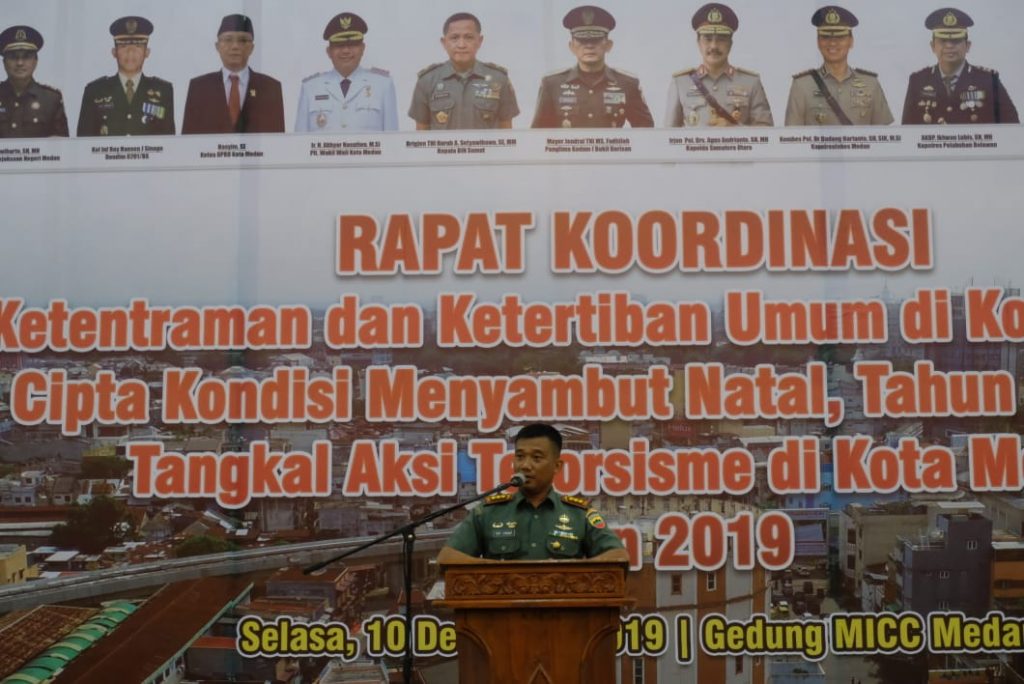 Dandim 0201/BS Kolonel Inf. Roy Hansen J. Sinaga S.sos Mengikuti Kegiatan Rapat Koordinasi Ketentraman dan Ketertiban Umum di Kota ” Terkait Cipta Kondisi Menyambut Natal, Tahun Baru dan Cegah Tangkal Aksi Terorisme Di Kota Medan Tahun 2019 di Gedung MICC Jl. Gagak hitam selasa (10/10/2019).