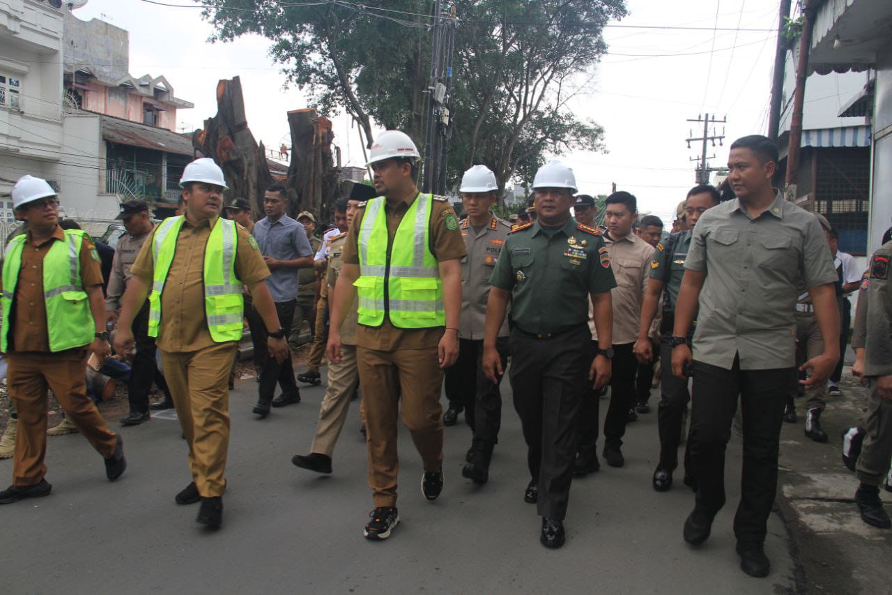 Dandim 0201/Medan Dampingi Walikota Medan Tinjau Pemancangan Tiang Pelebaran Parit Emas Jalan Sampali