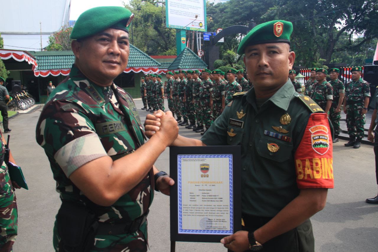 Dandim Beri Piagam Penghargaan Kepada Babinsa Kodim 0201/Medan