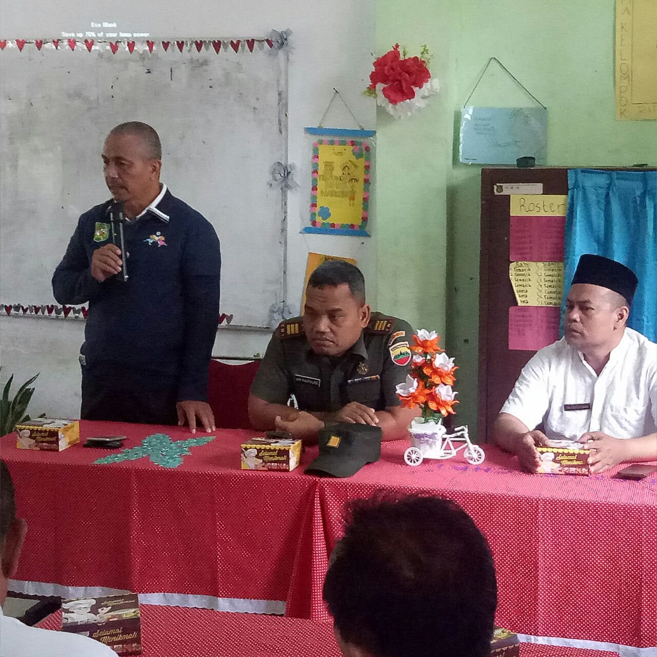 Danramil 02/MT Kapten Inf AM Marpaung didampingi 2 orang Babinsa yakni Pelda Indra dan Serma Heri Suharsono menghadiri kegiatan kampanye Imunisasi MR di SD 060874 Jl. Ibrahim Umar Kel. Sei Kera Hilir ll Kec. Medan Perjuangan pada hari Kamis tangga 02 Agustus 2018. Turut hadir dalam kegiagan kampanye Imunisasi MR antara lain :