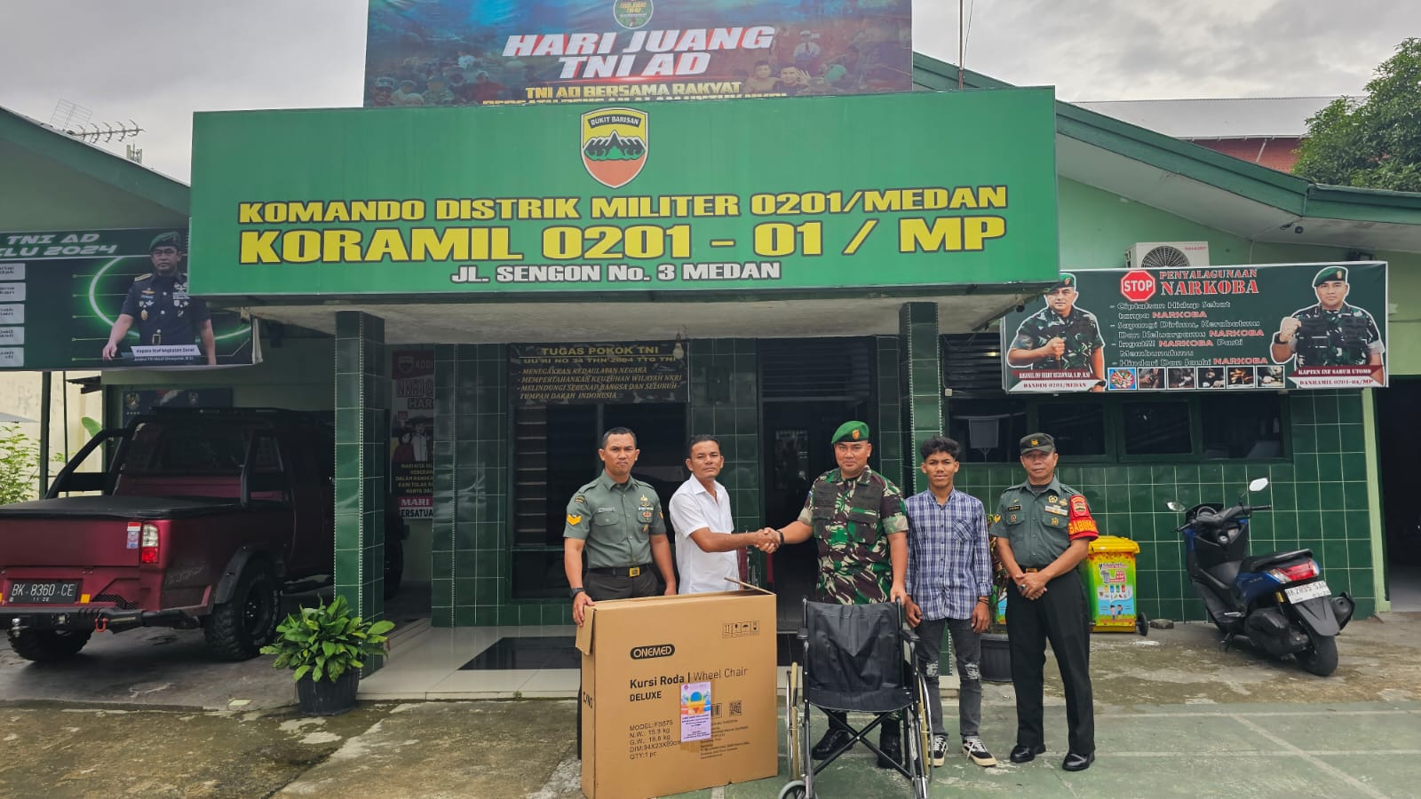 Danramil 01/Medan Petisah Kapten Inf Sabur Utomo, bertempat di Makoramil 0201-01/Medan Petisah, Rabu (29/12/2023), mengatakan dalam rangka Hari Juang TNI-73 ini, kami akan mendistribusikan bantuan kursi roda kepada warga kami yang memang layak membutuhkan bantuan kursi roda.