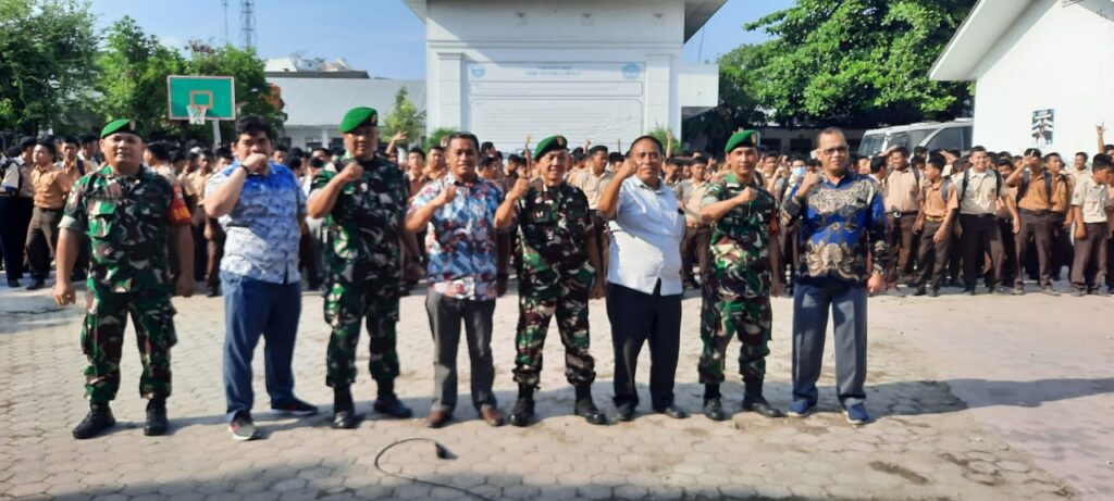 Danramil 0201-02/MT beserta Babinsa melaksanakan kegiatan sosialisasi dan pengawasan di SMK Negeri 4 yang terletak di Jalan Sei Kera No. 105f, Kelurahan Pandau Hilir, Kecamatan Medan Perjuangan. Sabtu, (24 Juni 2023)