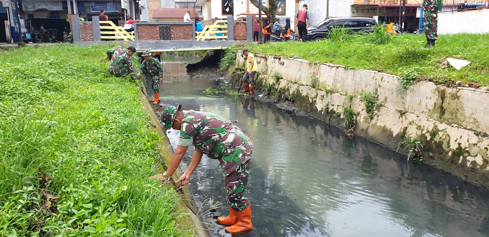 DANRAMIL 0201-03/MD BERKOLABORASI DENGAN MUSPIKA LAINNYA, KEPLING DAN PPPSU KEC MEDAN DENAI MELAKSANAKAN GOTONG ROYONG DENAI BERSAMA