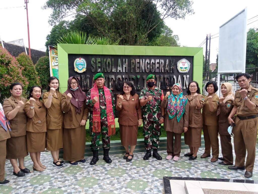 Danramil 0201-06/MS Kodim 0201/Medan Kapten Inf Hari Susilo dengan khidmat memimpin jalannya upacara bendera yang diikuti ratusan siswa siswi SMAN- 12 Medan Area Hadir juga Kepala Sekolah SMAN-12 Medan Kepala Sekolah Guru dan Staf pengajar SMAN-12 Medan.