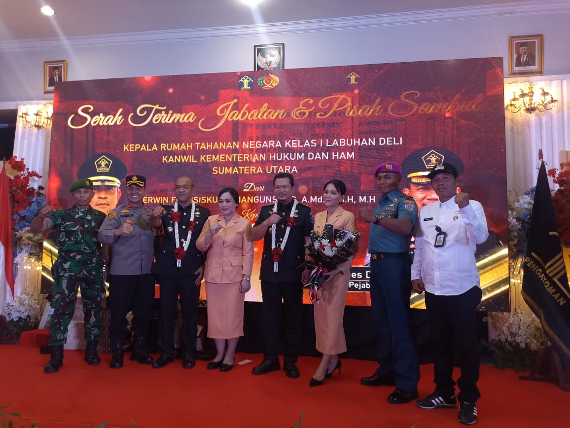Bersama Forkopimcam Danramil 0201-10/MM Kapten Inf. Rahimin menghadiri undangan sertijab Ka Rutan Kelas 1 Labuhan Deli di Jln.Titi Pahlawan Lingk. VII Kel. Martubung Kec. Medan Labuhan. Rabu(25 September 2024).