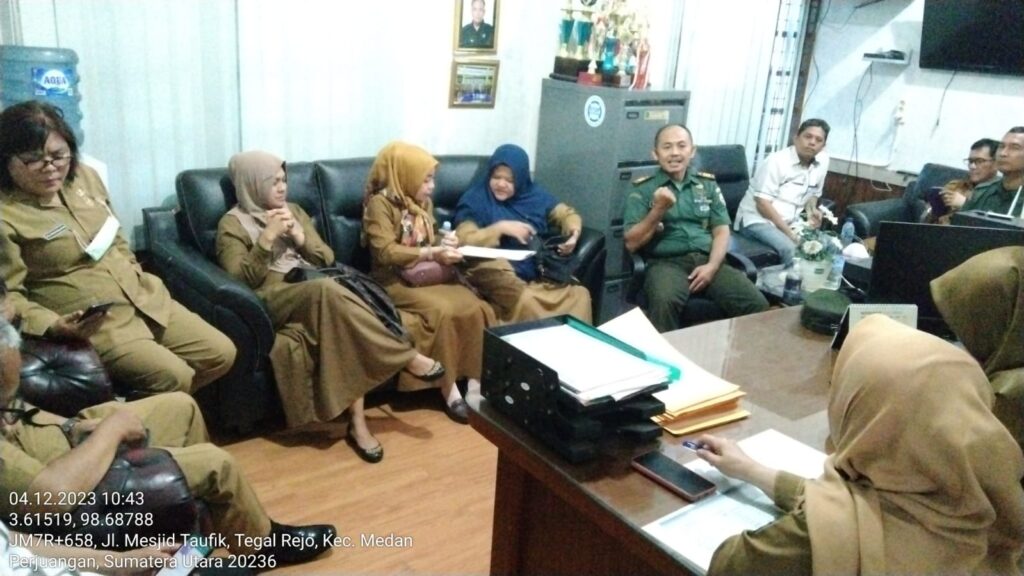 Danramil Kapten Inf Amran dan Babinsa Serka RM. Hutapea Koramil 0201-02/Medan Timur melaksanakan kegiatan rapat di Kantor Camat Medan Perjuangan. Kegiatan ini bertujuan untuk membahas rencana kegiatan Pramuka Kwarran Medan Perjuangan. Senin (4/12/2023)