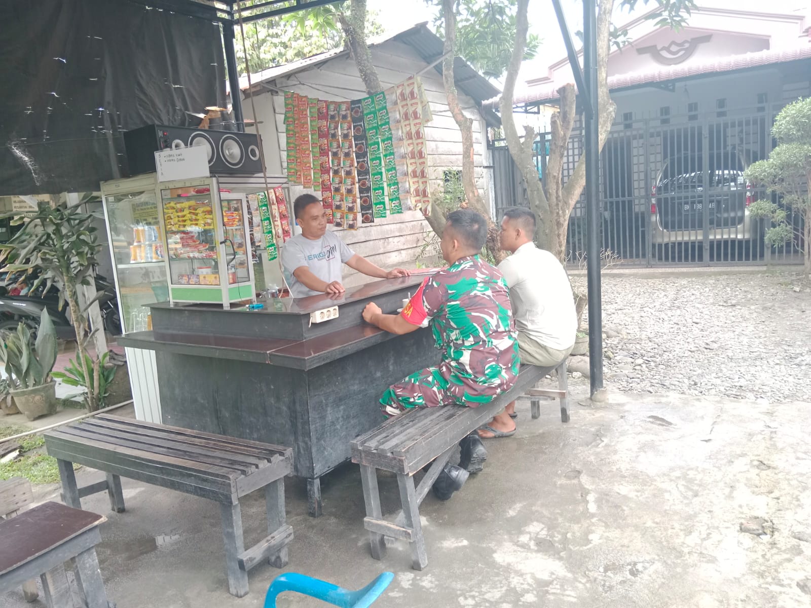 Babinsa Koramil 0201-07/ Medan Tuntungan serda JA Purba melaksanakan Komunikasi Sosial dengan warga binaannya di warung kopi Jalan setia budi Lingkungan Xl Kelurahan Tanjung sari Kecamatan Medan Selayang Selasa, (31/01/2023).