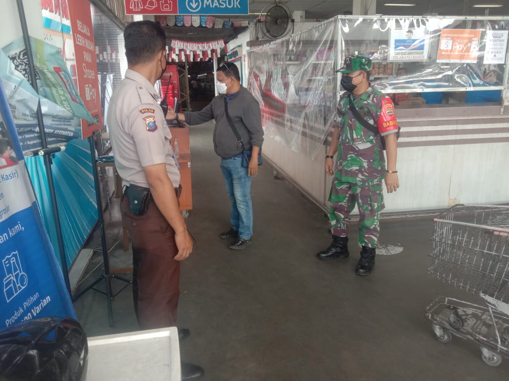 MEDAN – Bertempat di Swalayan Indogrosir, Jalan SM.Raja, Kelurahan Harjosari I, Kecamatan Medan Amplas, Babinsa Koramil 0201-08/ MA Kodim 0201/Medan Pelda Amin Hasibuan melaksanakan pemantauan penerapan kedisiplinan prokes kepada pengunjung agar selalu mentaati protokol kesehatan (Prokes) di masa pandemi covid-19, Senin (26/09/2022).