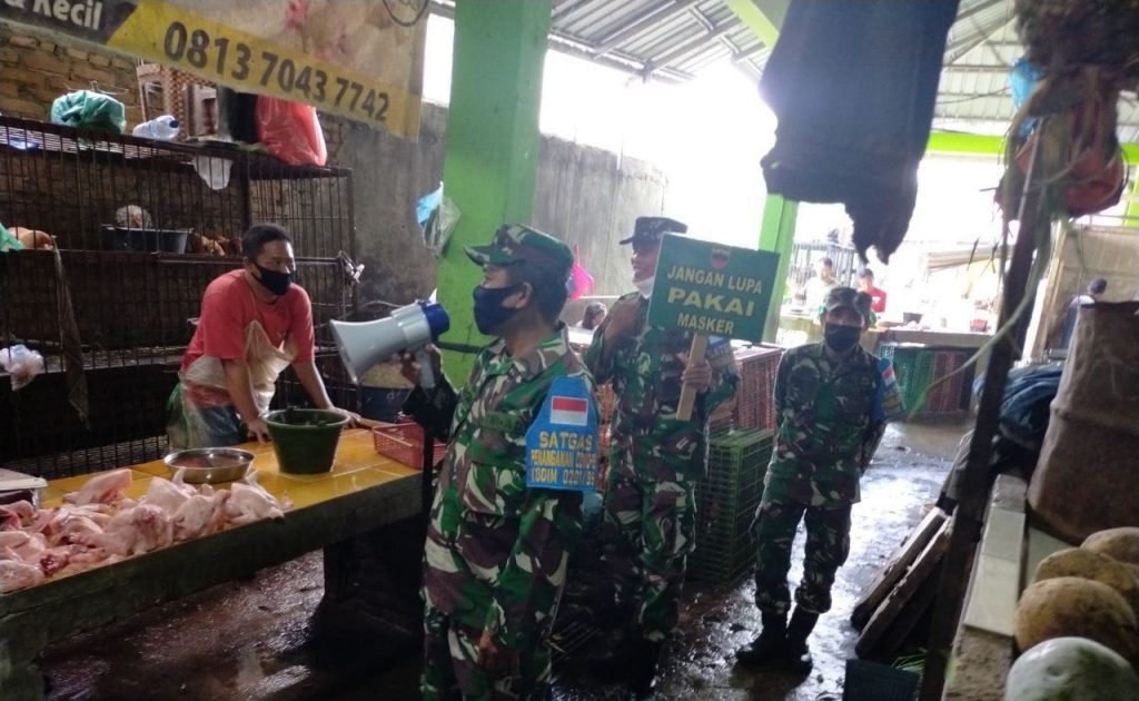 Dimasa Pandemi Babinsa Koramil 0201-07/MT Selalu Menghimbau Kepada Pedagang Dan Pembeli Untuk Mematuhi Prokes