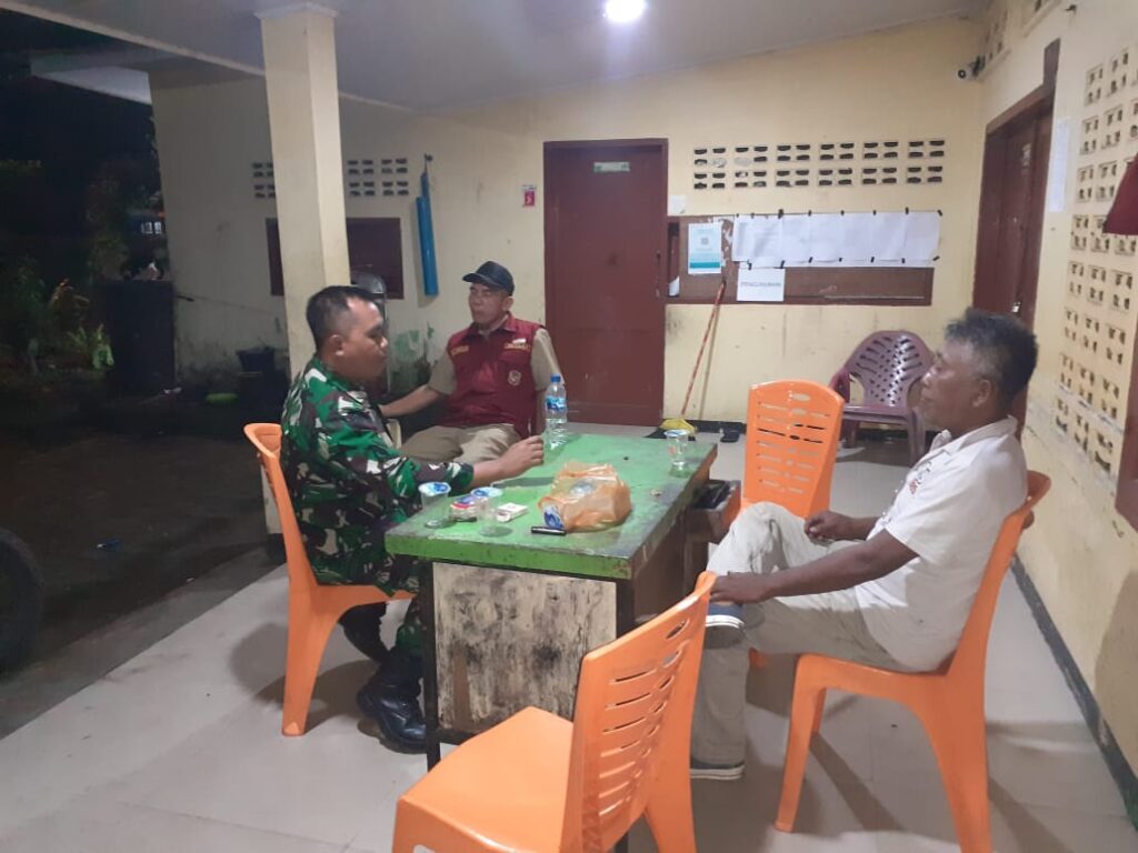 Babinsa Koramil 0201-08/MA Jajaran Kodim 0201/Medan Serda Ahmad Hasibuan bersama Kepala Lingkungan melaksanakan Komsos sekaligus pemantauan situasi Kamtibmas di wilayah binaan, bertempat di Posko Kamtibmas Jalan Garu III, Kelurahan Harjosari I, Kecamatan Medan Amplas, Sabtu (28/01/2023).
