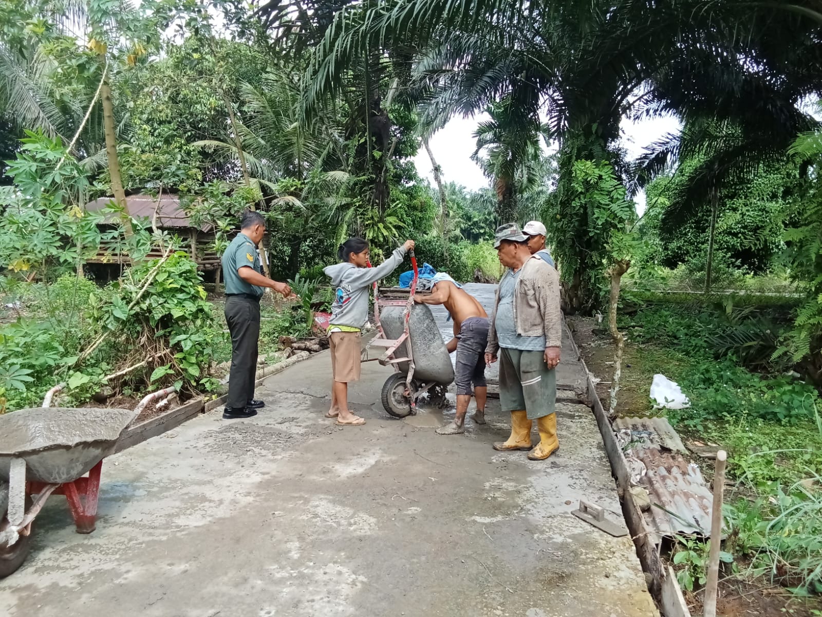 DUKUNG PEMBANGUNAN DESA, BABINSA DAMPINGI PEMBANGUNAN RABAT JALAN BETON DESA CINTA RAKYAT KECAMATAN NAMORAMBE.