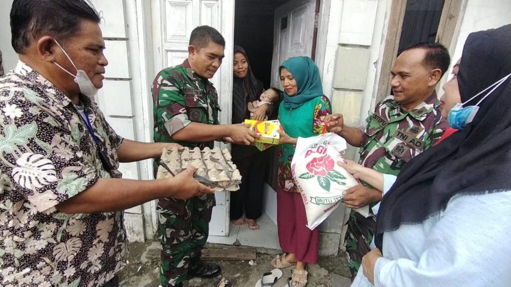 MEDAN 05 MB | Didampingi Lurah Sei Mati ibu Fatimah Harahap, Babinsa Pelda MP Sitepu, Petugas PLKB dan Kader Posyandu serta Kepala Lingkungan XII, Komandan Koramil 0201-05/MB Kodim 0201/Medan Kapten Czi Soni P Ginting memberikan bantuan berupa makanan dan tambahan gizi kepada keluarga yang beresiko stunting bertempat di Jl. Brigjen Katamso Gg Ksatria Lingkungan XII Kelurahan Sei Mati, Kecamatan Medan Maimun.