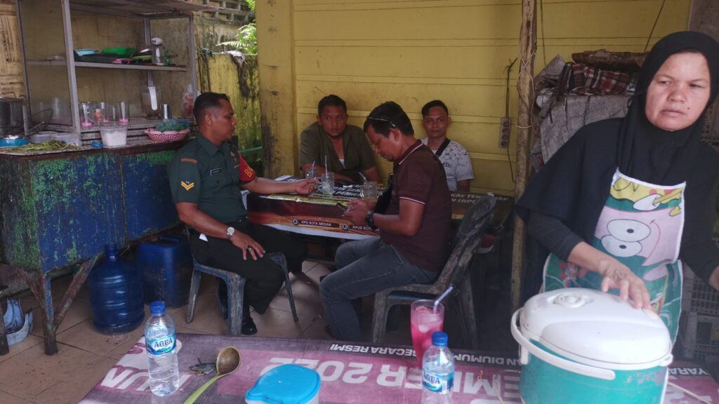 Medan Kota – Untuk mewujudkan kekompakan dan jalin silaturahmi antara Babinsa dan Kepling,Babinsa Kelurahan Sudirejo ll melaksanakan anjangsana dengan kepling dan warga binaan yang ada diwarung kopi ,jalan Kemiri l Kelurahan Sudirejo ll Kecamatan Medan Kota.Kamis 22/06/2023.