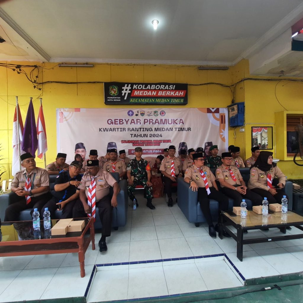 Medan, Gebyar Pramuka Kwartir Ranting (Kwarran) Medan Timur sekaligus perayaan HUT Pramuka ke-63 berlangsung meriah hari ini di Kantor Camat Medan Timur. Acara dimulai pukul 07.00 WIB dan dihadiri oleh berbagai tokoh penting, termasuk Camat Medan Timur Noor Alfi Pane, Ketua Kwarran Medan Timur Hernina Kurniasih, serta Serka R.M. Hutapea dari Babinsa Kelurahan Pandau Hilir yang mewakili Danramil 0201-02/MT. Minggu, (25-08-2024)