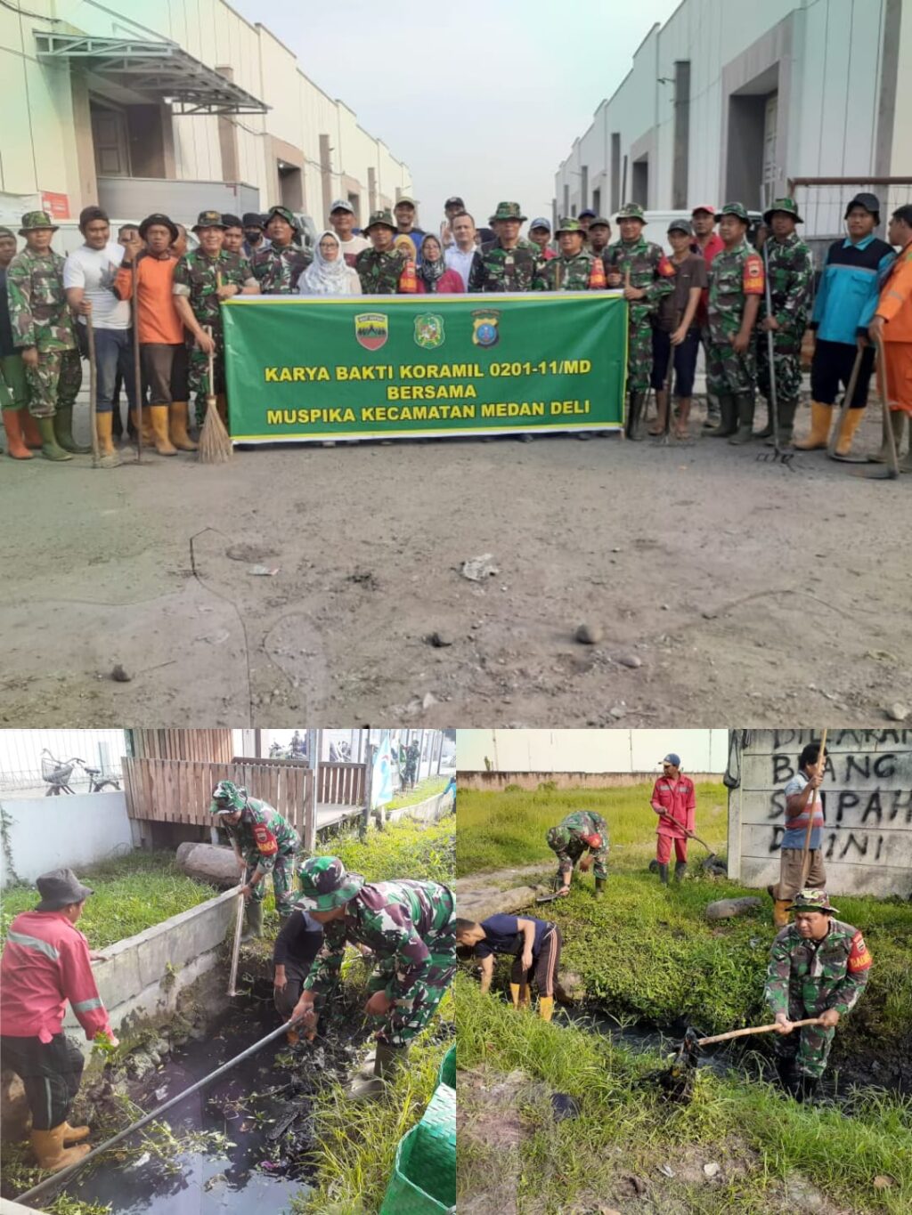 Koramil 0201-11/MD satuan kewilayahan jajaran kodim 0201/Medan, mengajak berkolaborasi bersama pihak kecamatan maupun kelurahan di wilayah binaanya guna memelihara kebersihan lingkungan melaksanakan gotong royong bersama sebagai bentuk karya Bhakti TNI dengan kegiatan membersihkan drainase sepanjang kurang lebih kurang 350 meter tepat di jln. Rumah Potong Hewan Lk-X kelurahan Mabar kec. Medan Deli, rabu (24/01/2024).