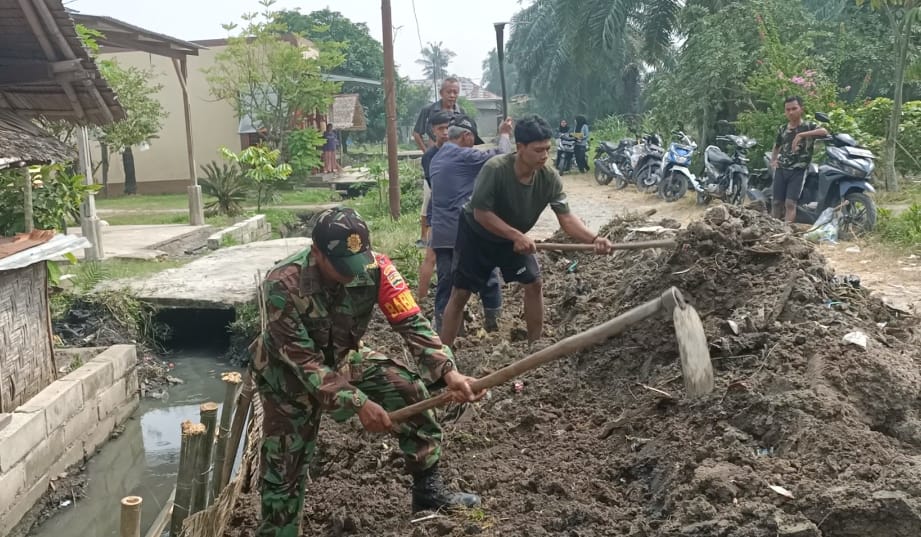 Hamparan perak Babinsa Koramil 0201-12/HP Pelda Dian Christianto melaksanakan gotong royong bersama warga di dusun 3 Sukaramai desa Tandam Hulu II kecamatan hamparan perak kab Deli Serdang Rabu 28/08/2024