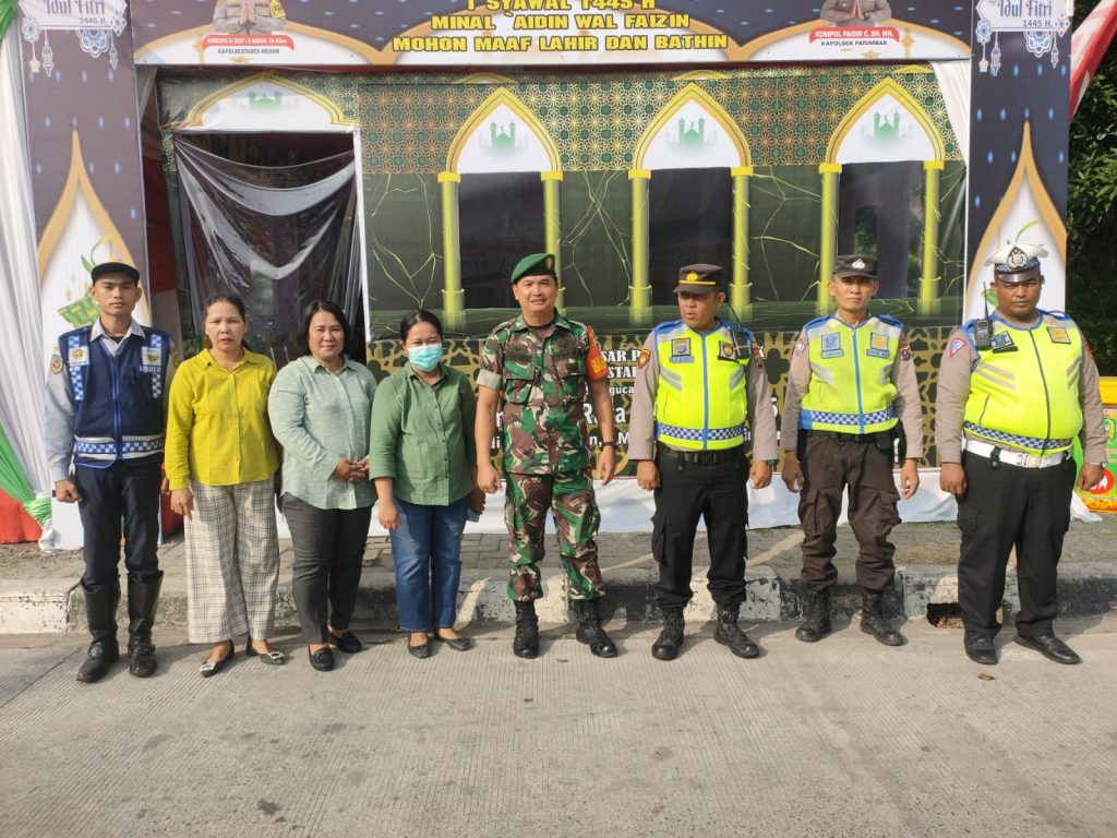 Medan : Anggota Koramil 0201-08/MA jajaran Kodim 0201/Medan bersama anggota Polsek Patumbak dan instansi terkait lainnya melaksanakan kegiatan pengamanan arus mudik lebaran 1445 H/TH 2024. Bertempat di Pos Pam Ketupat Toba Jalan SM.Raja, Kelurahan Harjosari II, Kecamatan Medan Amplas, Selasa (09/04/2024).