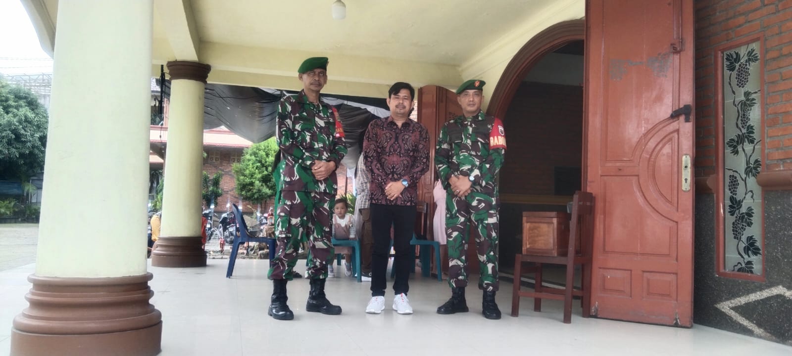 Guna memberi rasa aman dan nyaman bagi warga yg melaksanakan kebaktian awal tahun Kegiatan Babinsa Koramil 0201-03/MD Serma S.Sinurat dan Serda Budi Wahyono melaksanakan Monitor Pengamanan kegiatan Ibadah Tahun Baru 2024, Kegiatan di Gereja Paroki St yohanes Penginjil Mandala Medan,