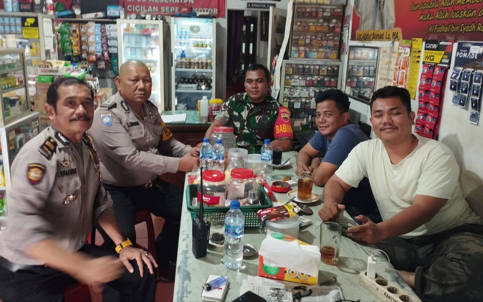 Kamis (22/02/2024) Dalam rangka meningkatkan silaturahmi dan hubungan kerja yang baik di wilayah binaannya, Babinsa Koramil 0201-03/MD Serda ahmad suyadi melaksanakan kegiatan Komsos dengan Babinkantibmas dan bpk kepling TSM Ill di warung bpk ali yg berada di jln Tuba IV Kel. TSM Ill Kec. Medan Denai.
