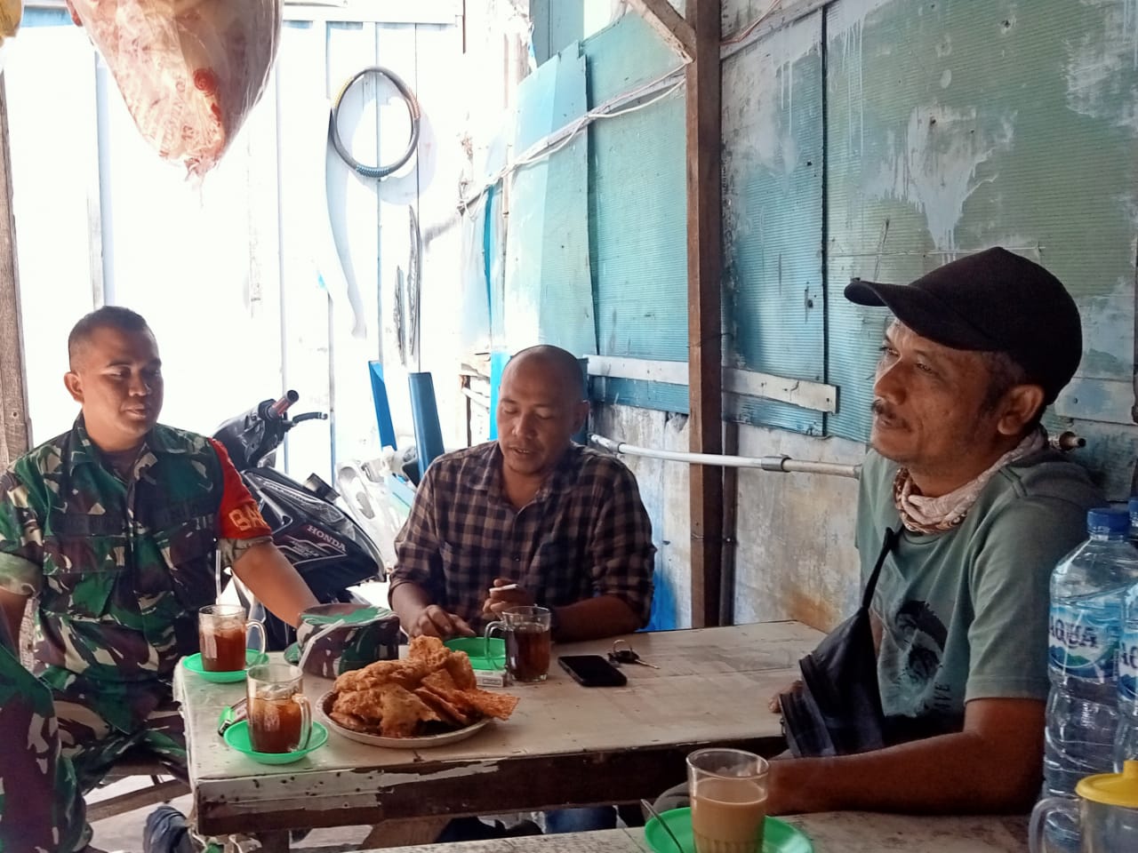Babinsa TSM lll serda Ahmad Suyadi melaksanakan komsos di jalan Pancasila lingkungan Xll