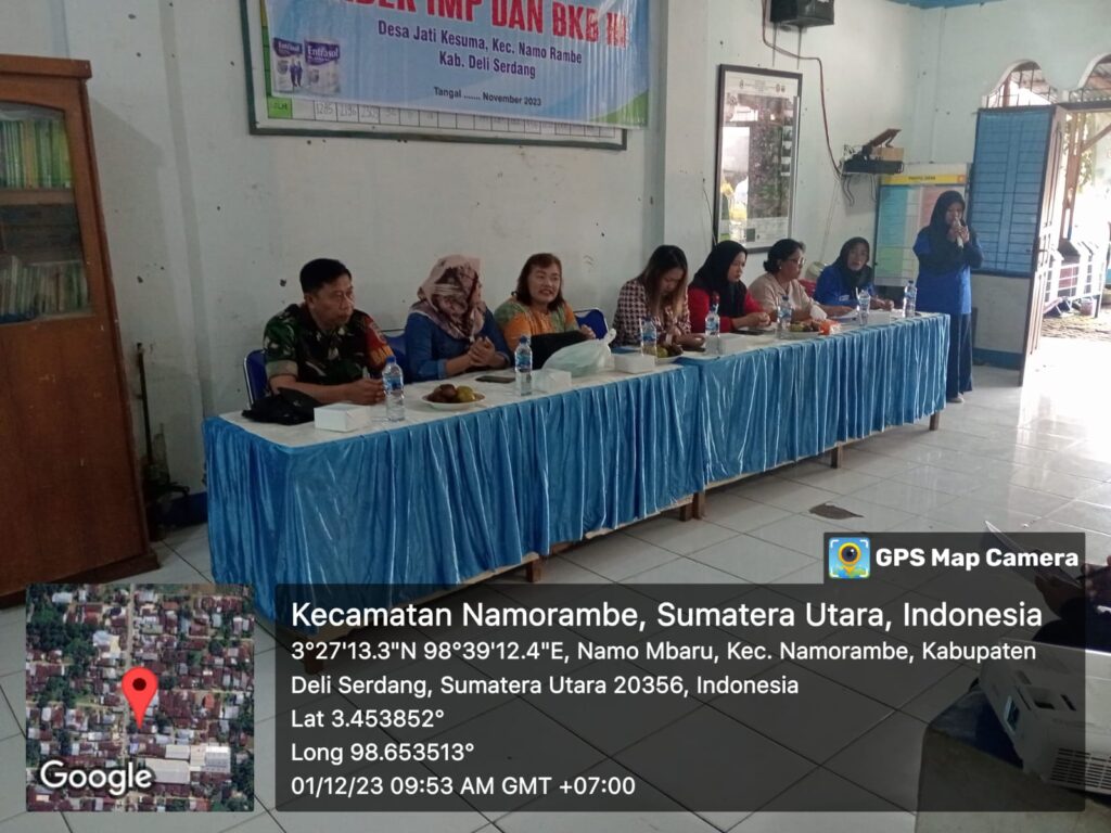 Kegiatan dihadiri oleh Ketua PKK Kec. Namorambe Ibu Marinda Febri Gurusinga, Ibu Herlyna Sitanggang, Kades diwakili Sekdes Ibu Maryati, Babinsa Serma Suswanto, Bidan Desa Ibu Goh Maria Sembiring dan peserta Kader IMP dan BKB HI serta Perangkat Desa Jati Kesuma.