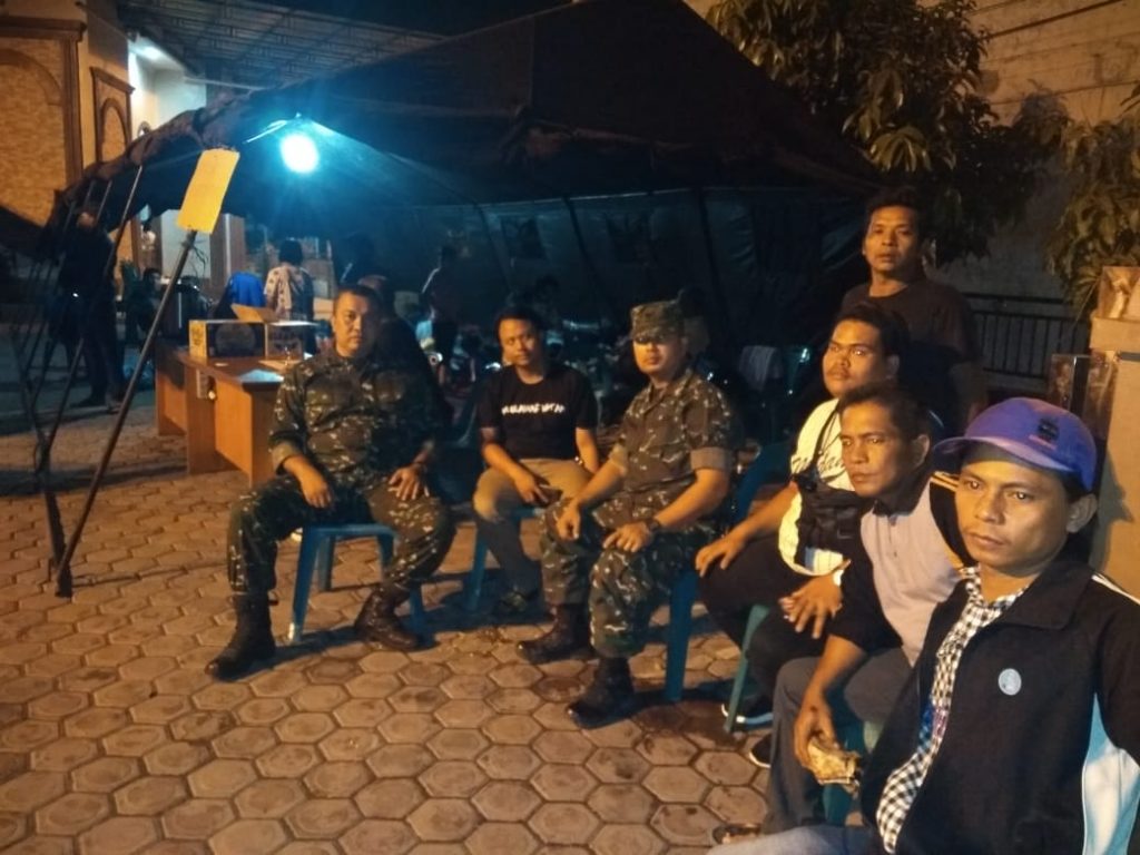 Menjelang tengah malam, kedua Babinsa masih berada di posko penampungan.