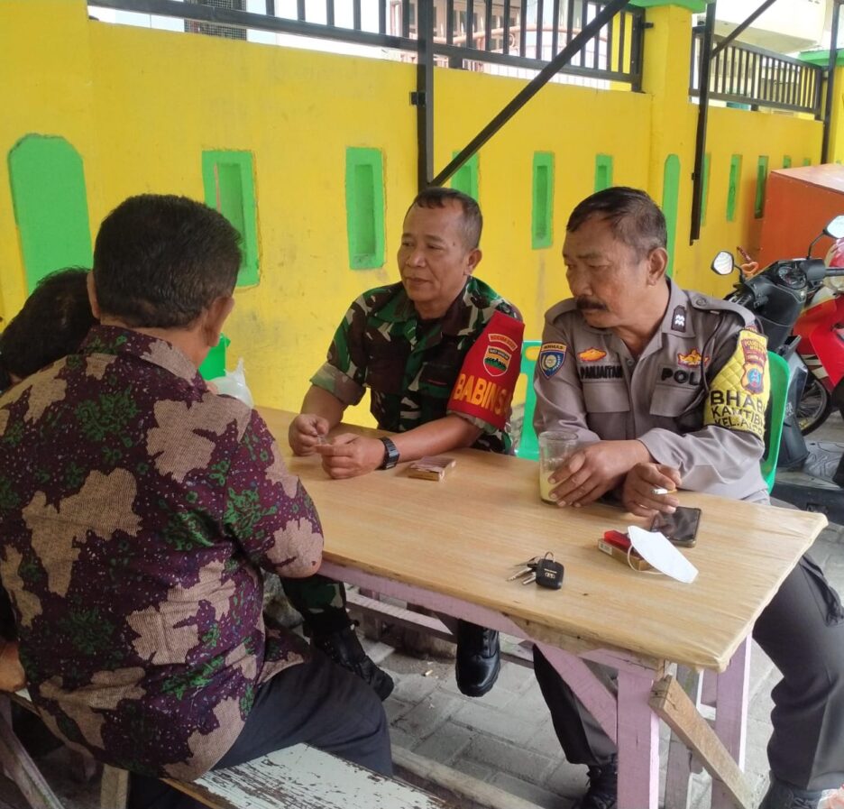 MEDAN Sambil bercengkrama dengan warga, Babinsa Kelurahan Karang Berombak, Koramil 01/MB, Serda Suprayitno, mengajak warga