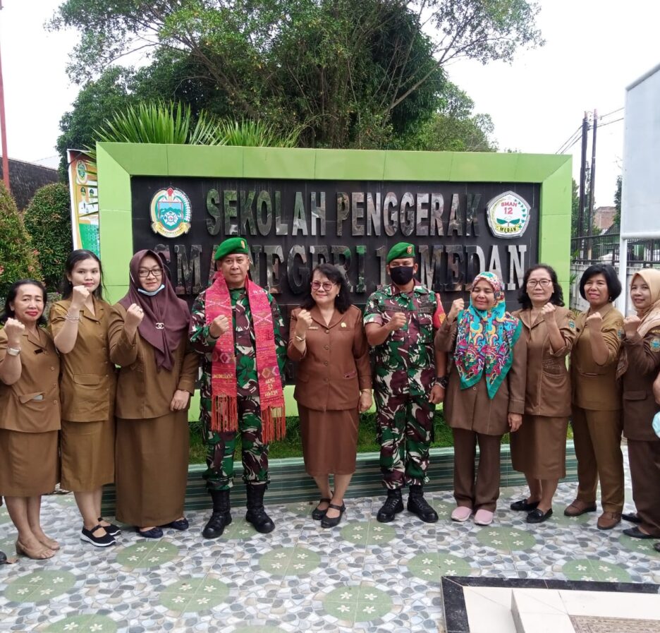 Medan | Dalam upaya meningkatkan jiwa patriotisme di lingkungan pelajar, Babinsa Koramil 08/MJ Kodim 0201