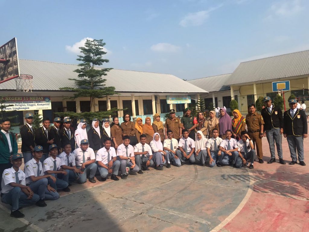 Turut hadir dalam Upacara bendera tersebut, Kepsek, Guru/Staf serta Siswa & Siswi SMAN 11 Medan.