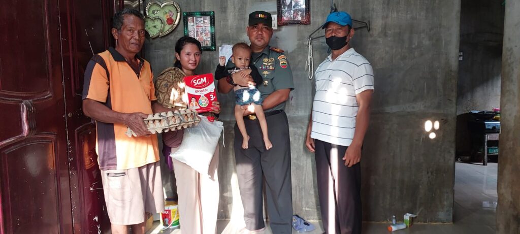 Bantuan penambah gizi tersebut, diberikan Danramil dengan mendatangi langsung rumah anak penderita stunting.