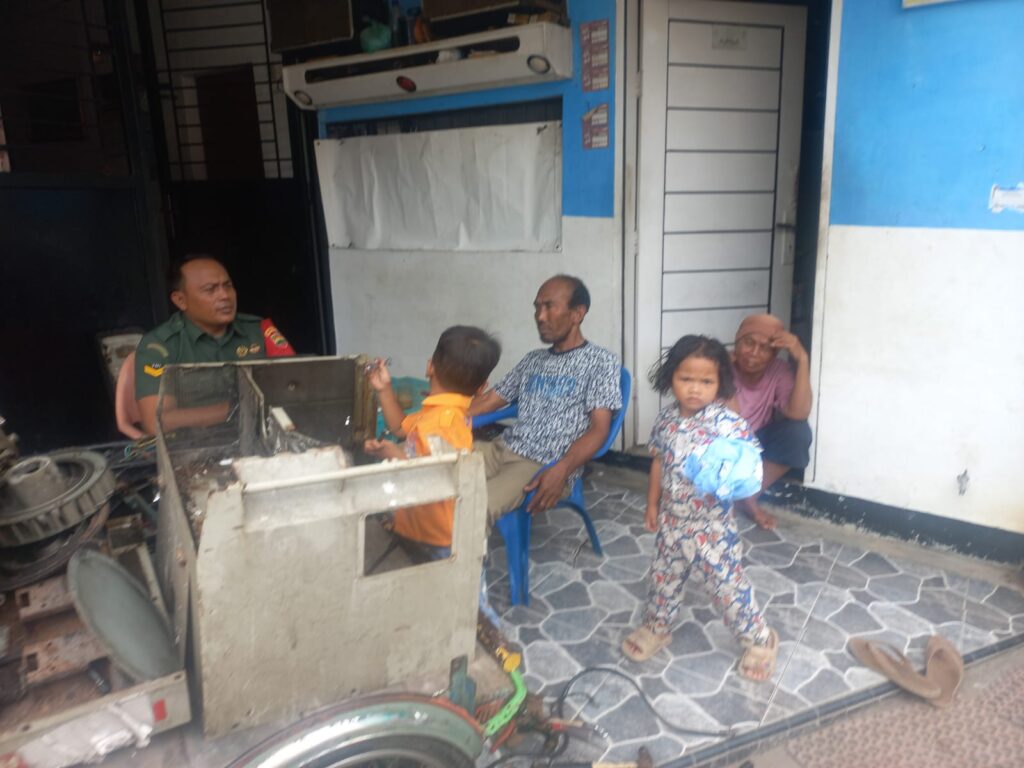 Medan : Dalam rangka mengoptimalkan Komunikasi Sosial (Komsos) Satuan Komando Kewilayahan terhadap komponen masyarakat, Babinsa Koramil 0201-08/MA Kodim 0201/Medan Sertu Rudi Hermanto berkunjung ke rumah warga binaan yang bertempat di Jalan STM, Kelurahan Sitirejo II, Kecamatan Medan Amplas, Kamis 21 Desember 2023.