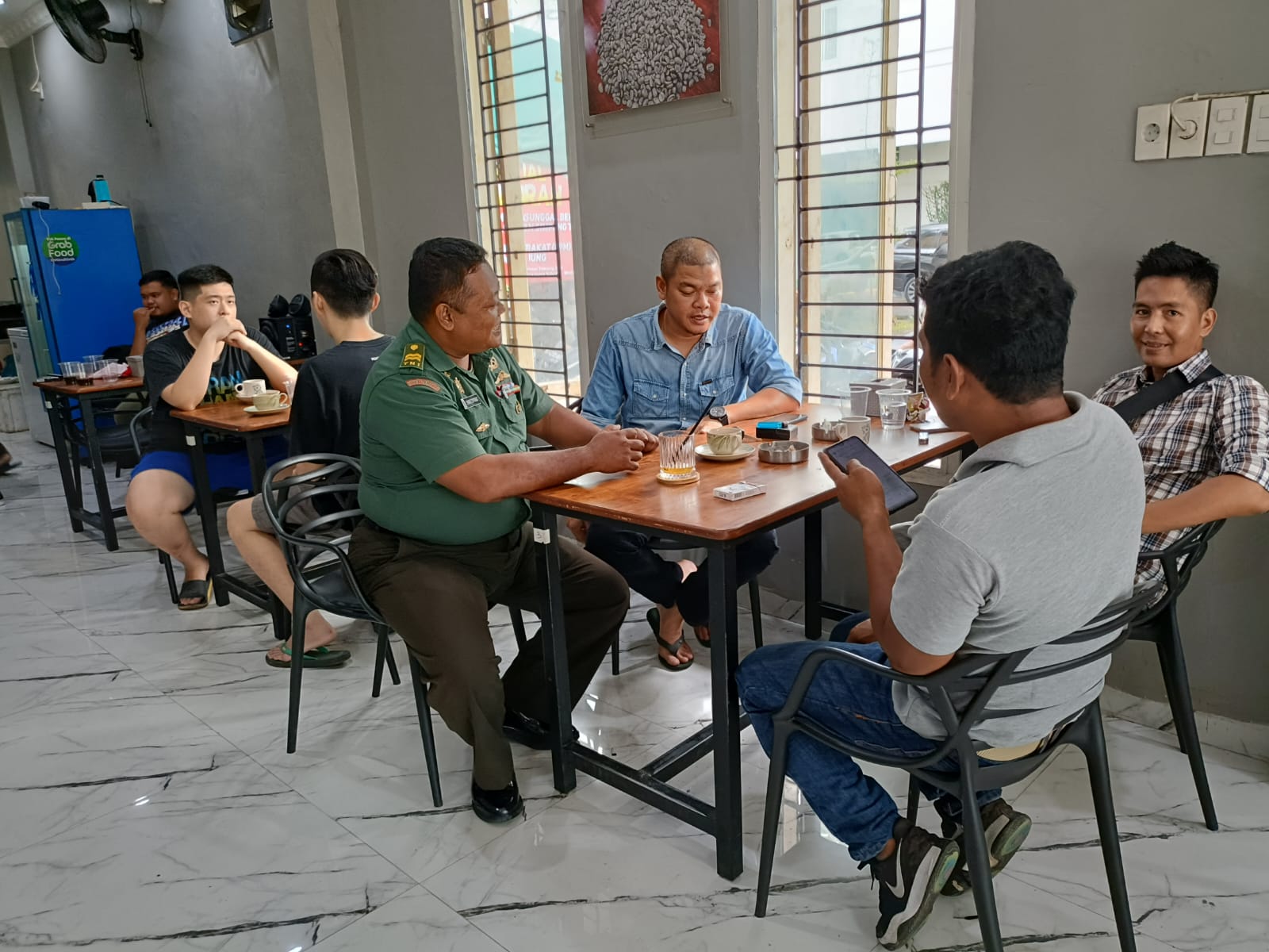 Medan. Dengan Menyambangi Warga yang sedang Duduk Diwarkop Boss Kopi,guna untuk Menjaga hubungan baik bersama Warga binaan Babinsa, Batituud Koramil 0201-06/MS,Kodim 0201/Medan Peltu Irwansyah melakukan Komsos dengan warga binaan untuk mempererat dan hubungan Silaturahmi