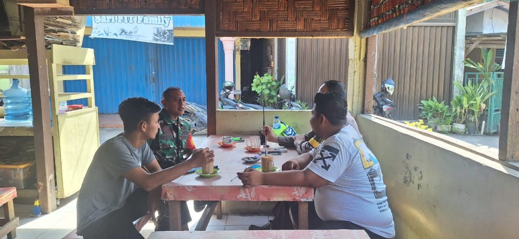 Babinsa Koramil 0201-07/MT Serma Suratno melaksanakan Komsos guna menjaga hubungan yang lebih baik dengan Babinkamtibmas dan warga,komsos tersebut di laksanakan di warung kopi bapak F Bangun bersama bapak Dian Sitepu tepatnya di Jln Flamboyan Raya Lingkungan 7 Kel Tanjung Selamat Kec Medan Tuntungan .