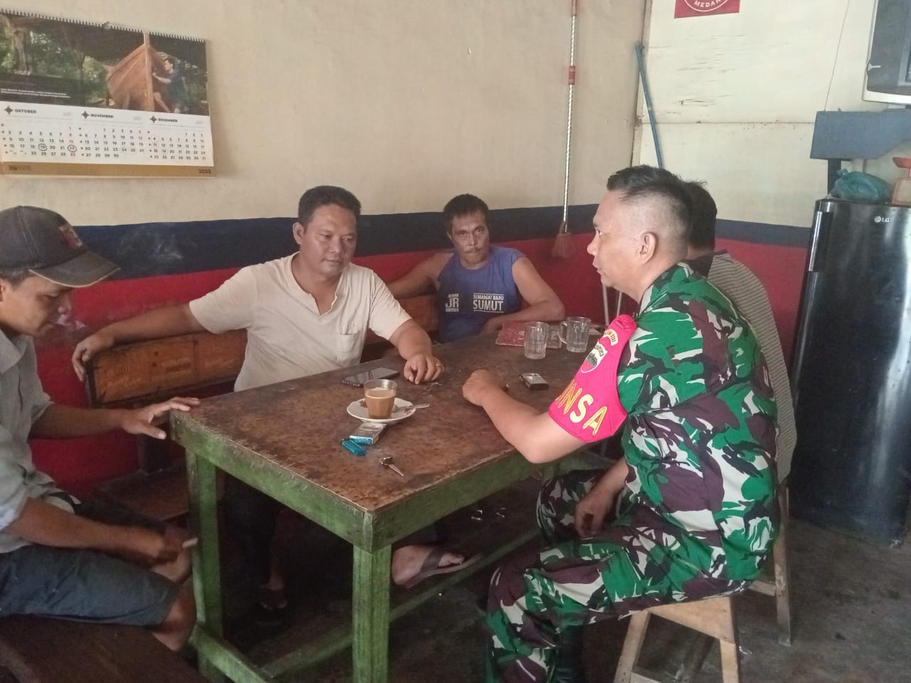 Rutinitas Komsos terus dilakukan Babinsa bersama seluruh lapisan masyarakat yang ada di desa binaan, baik dengan tokoh masyarakat, tokoh adat, tokoh agama maupun tokoh pemuda. Hal tersebut dilakukan guna membangun sinergitas dan meningkatkan kerjasama dalam menjaga Kamtibmas di lingkungan, serta saling mendukung dan bertukar informasi terkait perkembangan situasi dan kondisi di wilayah, guna menentukan langkah-langkah deteksi dini dan cegah dini pada setiap kemungkinan permasalahan yang terjadi.