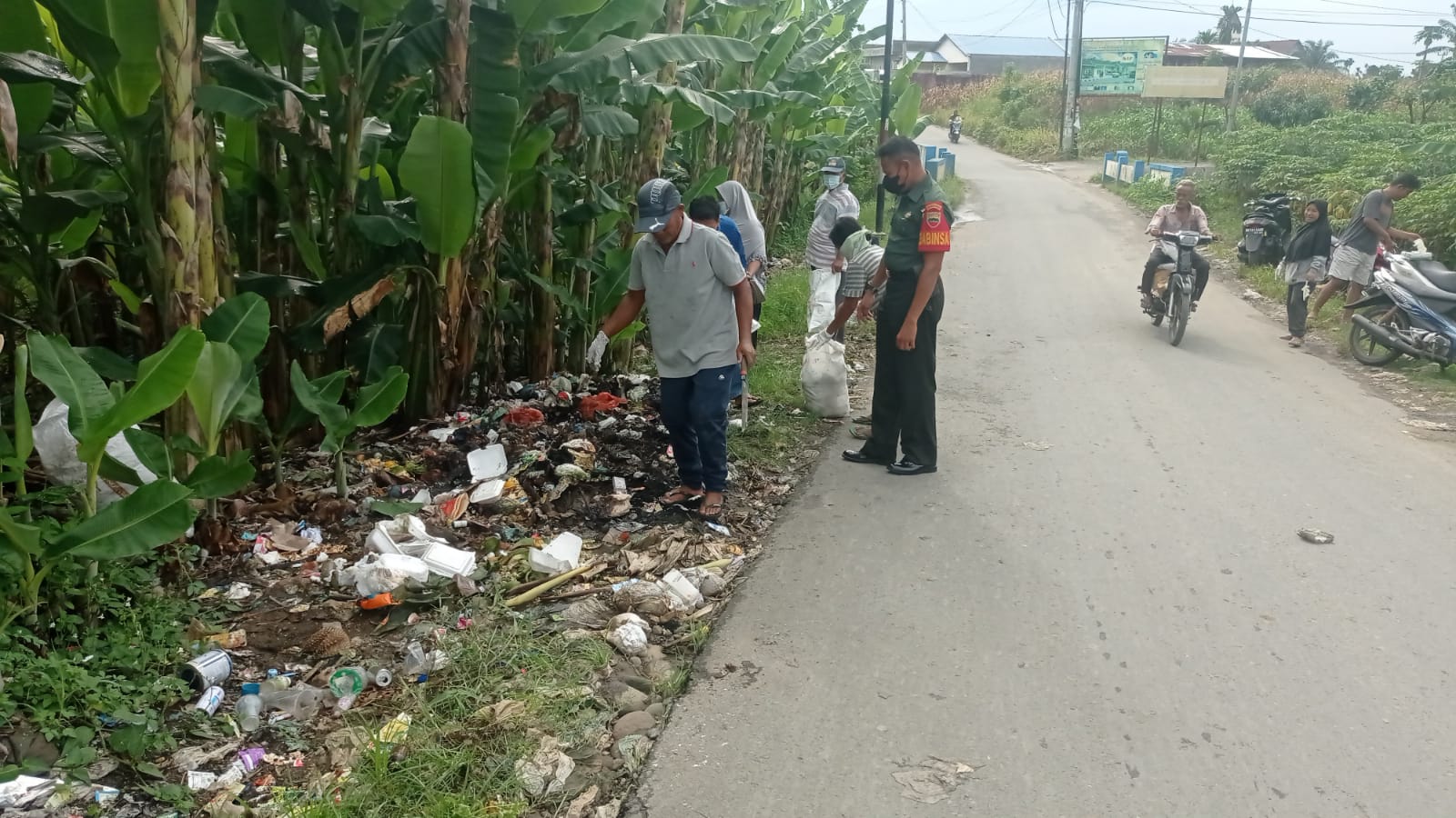 Pada kegiatan gotong royong ini, Babinsa Koramil 0201-14/PB Serda Jafar juga terlihat antusias dan penuh semangat dalam mendukung kegiatan. Hal ini karena setiap Babinsa yang memiliki wilayah Desa Binaan, harus ikut bertanggung jawab terhadap kebersihan Desa Binaan nya. “Kegiatan gotong royong yang kita laksanakan pada pagi hari ini semoga bisa kita laksanakan secara maksimal agar seluruh warga Desa yang tinggal dan bermukim di sini dapat merasa nyaman dan tentram serta terbebas dari penyakit. Selaku Babinsa, saya tentu nya sangat mengharapkan kerja sama dari kita semua, agar pelaksanaan gotong royong hari ini bisa selesai dengan hasil sesuai yang sudah kita rencanakan. Terlebih pada saat turun hujan lebat, tentu nya kita tidak ingin terjadi genangan air atau pun banjir yang melanda wilayah Desa kita ini, yang dapat menyebabkan terjadi nya penyebaran bibit penyakit.” ujar Babinsa Koramil 0201-14/PB Serda Jafar saat ikut mengangkat dan membersihkan sampah Organik dan sampah Non Organik bersama Perangkat Desa Tanjung Anom pada kegiatan gotong royong pagi ini di sepanjang Jln HM Puna Sembiring. (14/PB).