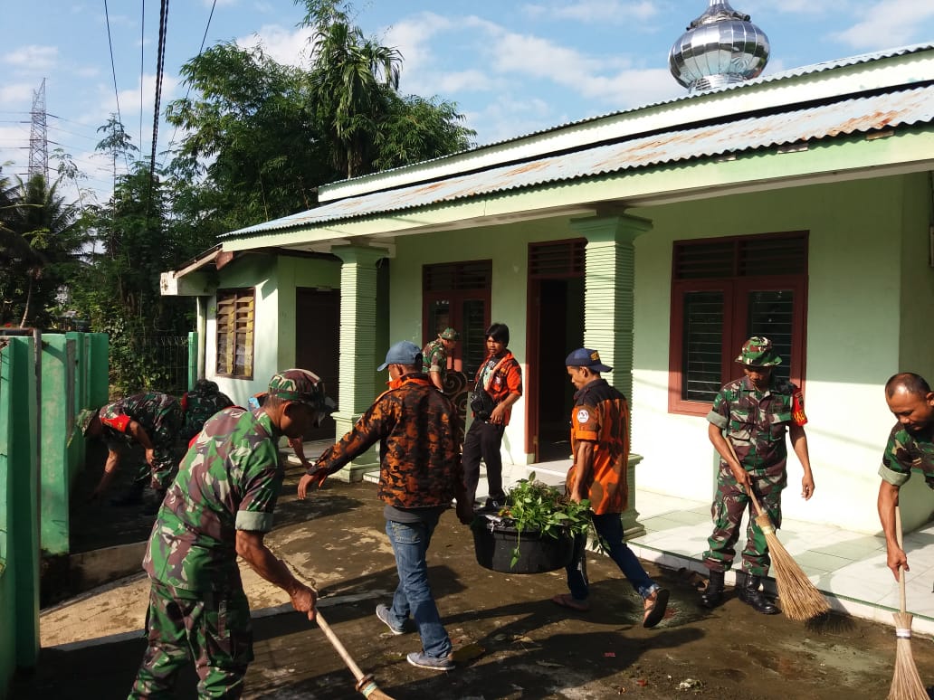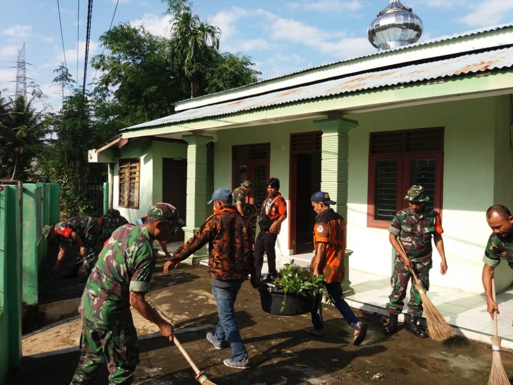 Jajaran Koramil 14/PB Bersihkan Jalan dan Rumah Ibadah