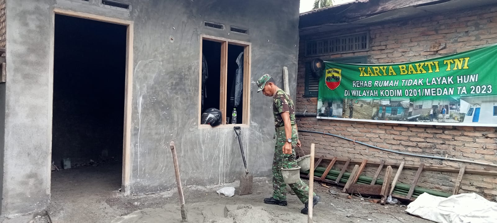 K0DIM 0201/MEDAN MELALUI KOMANDAN KORAMIL 0201-10/MM KAPTEN INF RAHIMIN BESERTA ANGGOTA LAKSANAKAN REHAB RUMAH TIDAK LAYAK HUNI