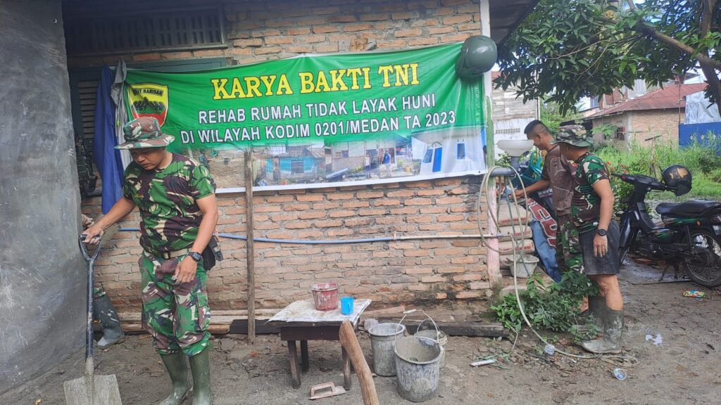 MEDAN MARELAN- Bentuk kepedulian Kodim 0201/Medan melalui Koramil 0201-10/MM beserta Anggota melakukan bedah rumah Rumah Tidak Layak Huni (RTLH), di kelurahan Paya pasir, lingkungan VIII kecamatan Medan Marelan, kamis (23/11/2023)