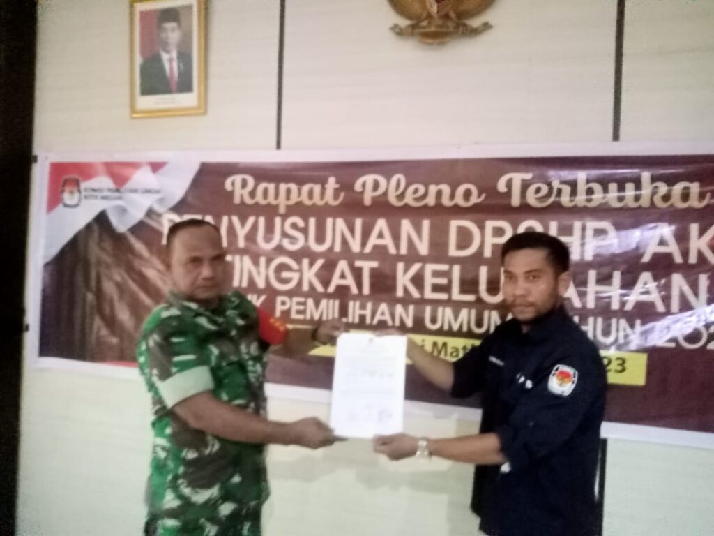 MEDAN 05/MB | Babinsa Koramil 0201-05/MB Kodim 0201/Medan Sertu Nurwahyudi Menghadiri Rapat Pleno Terbuka Rekapitulasi Daftar Pemilih Hasil Perbaikan Daftar Pemilih Sementara Akhir (DPHP-DPS Akhir) Pemilu 2024 Pemilu Tahun 2024 PPS Kelurahan Madras Hulu, Kecamatan Medan Polonia.