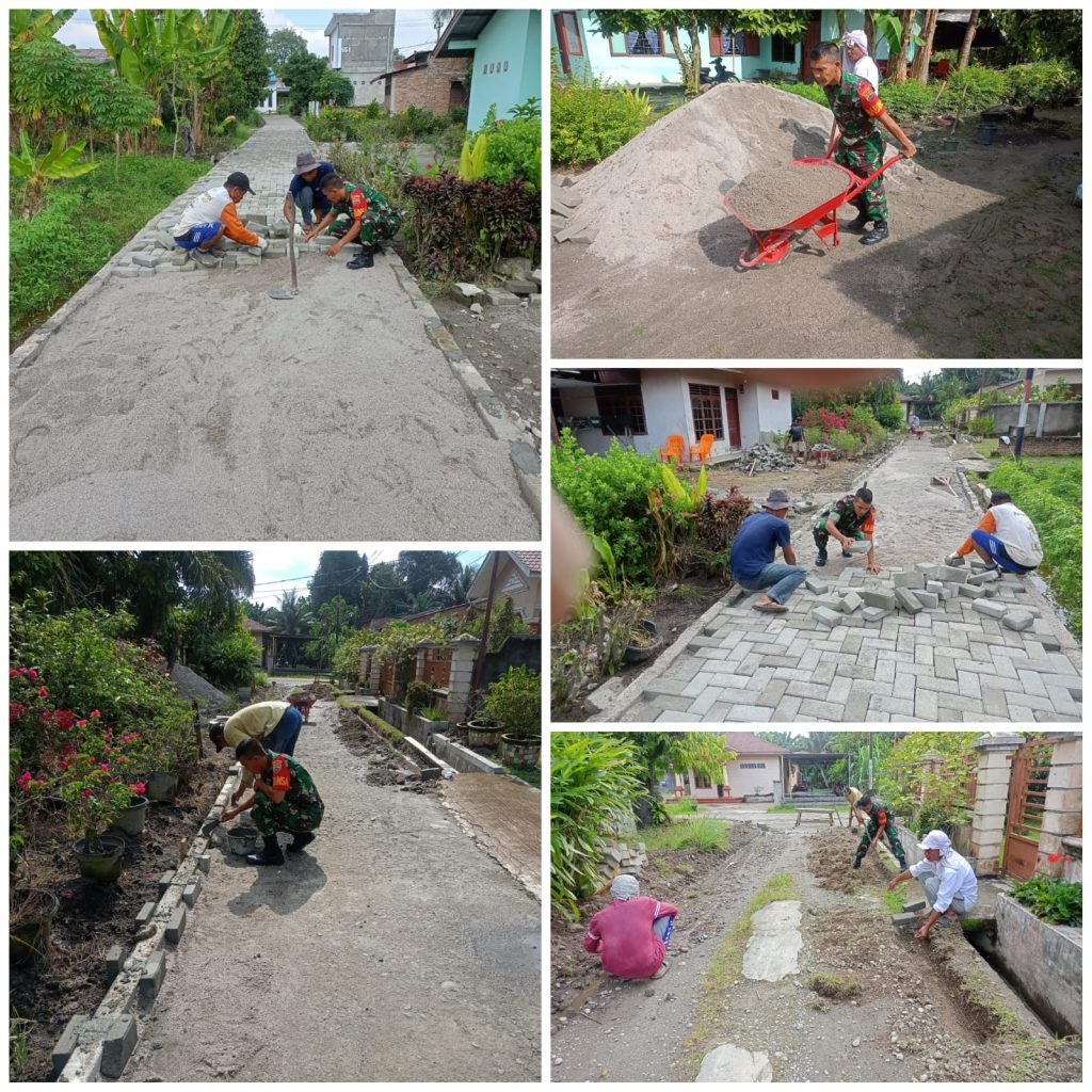Kegiatan Gotong royong Babinsa Koramil 0201-16/TM Pemasangan Paving Block di Desa Binaan