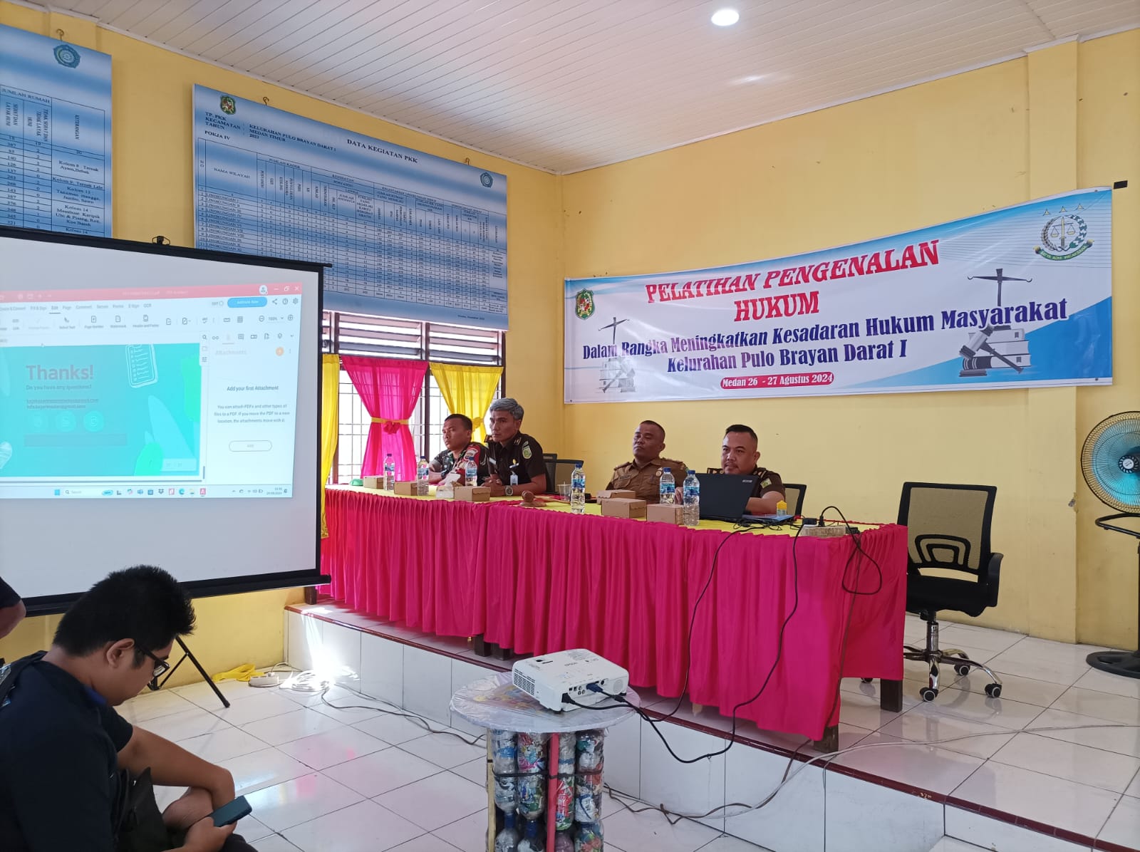 Medan, Pada Senin, 26 Agustus 2024, Kelurahan Pulo Brayan Darat I menggelar acara pelatihan dan pembinaan sadar hukum di aula kelurahan, Jalan Gunung Krakatau, Kecamatan Medan Timur. Kegiatan ini bertujuan untuk meningkatkan kesadaran hukum di kalangan masyarakat setempat dan dihadiri oleh berbagai pihak terkait.