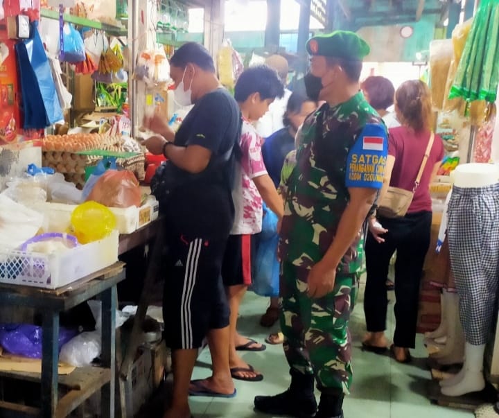 Dalam rangka meningkatkan kesadaran masyarakat untuk mematuhi protokol kesehatan Covid-19, Babinsa Koramil 0201- 06/MS Serda Putra melaksanakan Patroli PPKM menyisir tempat keramaian Pasar Sunggal Jl. Sunggal Kel.Sunggal Kec.Medan Sunggal Minggu, (13/09/2022).