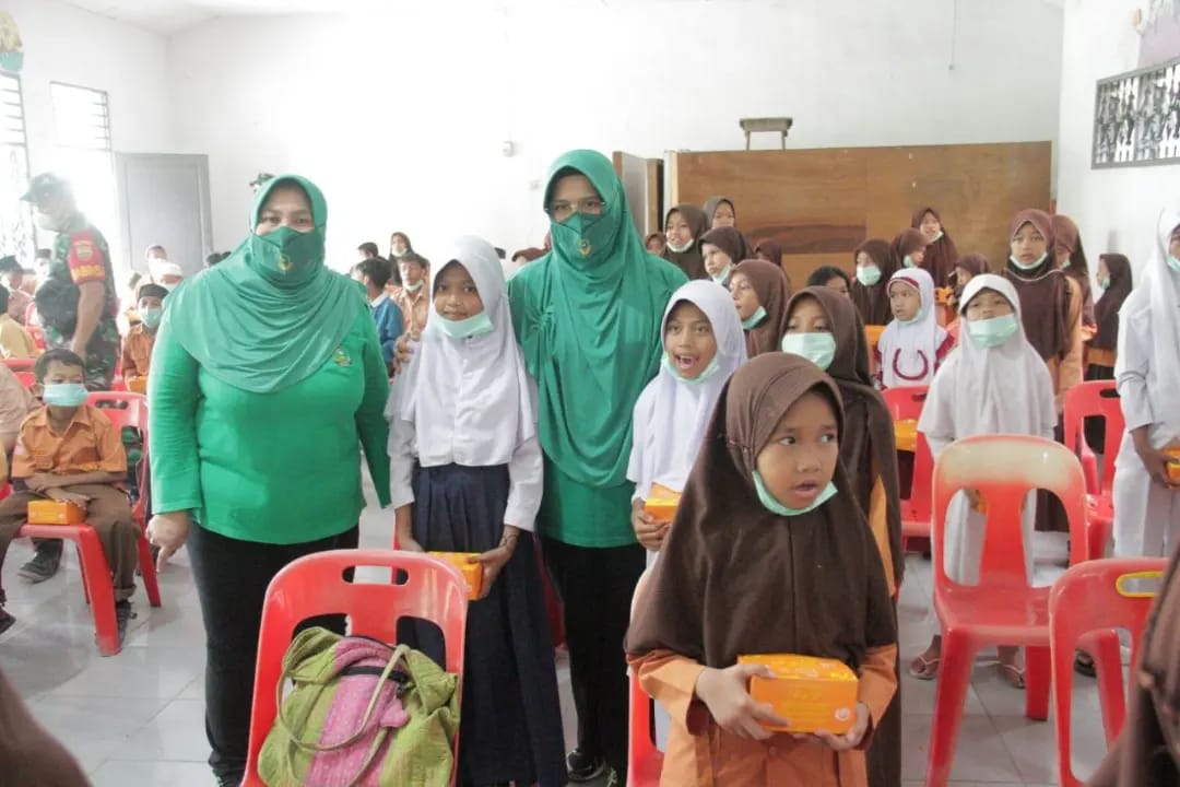 “Ini ibu datang sama Bapak Ibu yang lain membawakan sedikit bingkisan bisa dibawa pulang ke rumah anakn anak untuk diberikan ke orang tua di rumah, mudah-mudahan bisa bermanfaat dan bisa sedikit membantu anak-anak, tetap semangat belajar dan jadi anak yang sholeh dan sholehah,”ungkapnya