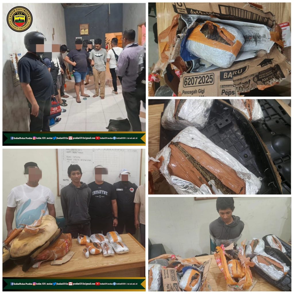 Kodim 0201/Medan Berkolaborasi dengan Polrestabes Medan menggagalkan pengiriman paket ganja kering seberat ± 5,7 kg (Kilogram) yang akan dikirimkan ke Kalimantan, Lampung, Jakarta dan Pekanbaru dengan menggunakan salah satu jasa pengiriman barang yang beralamat di Kec. Percut Sei Tuan Kab. Deliserdang, Kamis (5/9/2024)