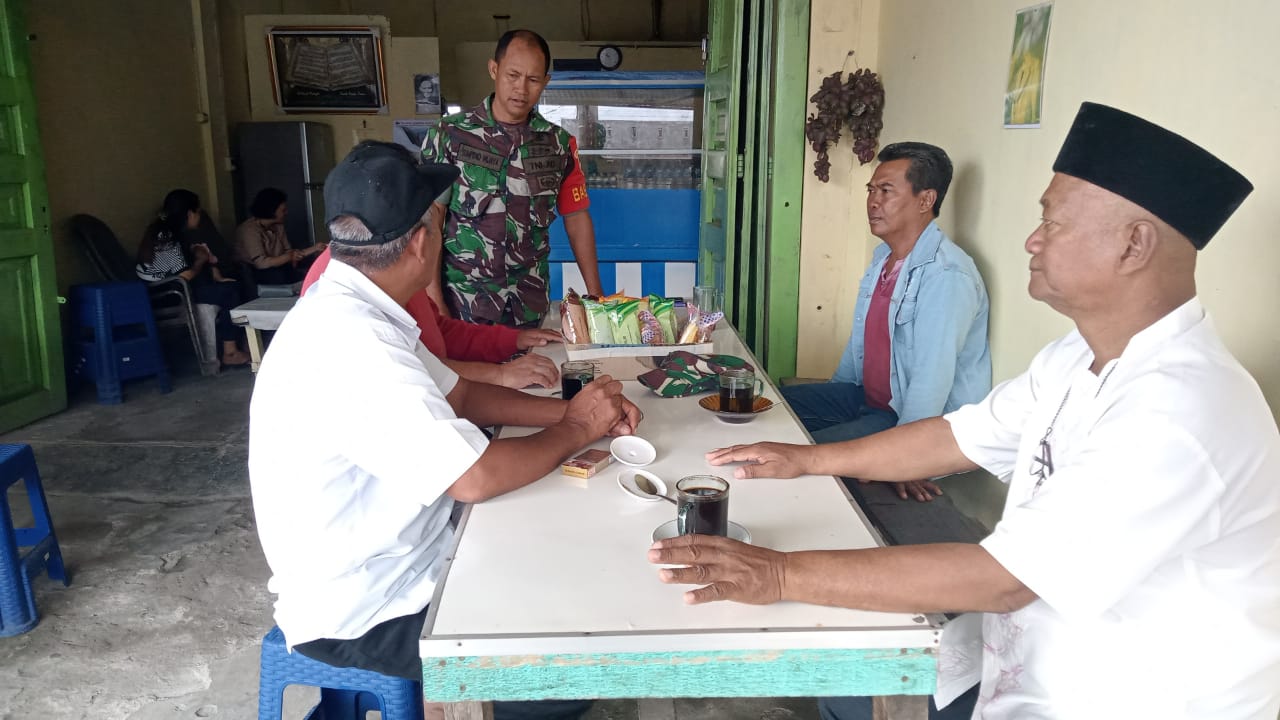 Kecamatan deli tua – Babinsa sertu sumpeno Wijaya anggota Koramil 15/DT , melaksanakan kegiatan Komunikasi Sosial dengan masyarakat di warung kopi pak Iwan Lingkungan IV Gg Japar kelurahan deli tua barat Kecamatan deli tua Kabupaten Deli Serdang (12/10/2022).