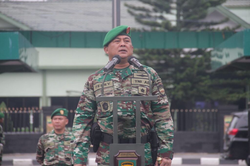 Dandim 0201/Medan Kolonel Inf. Ferry Muzawwad, S.I.P., M.Si, bertindak sebagai Inspektur Upacara menyampaikan amanat Panggilan Besar Jendral Soedirman