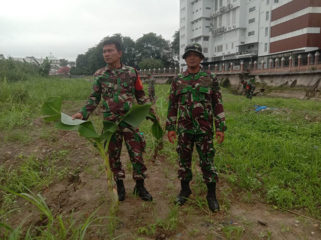 Komandan Koramil Kapten inf Rahimin Beserta Babinsa Koramil 0201-10/MM laksanakan gotong royong massal Normalisasi sungai Deli