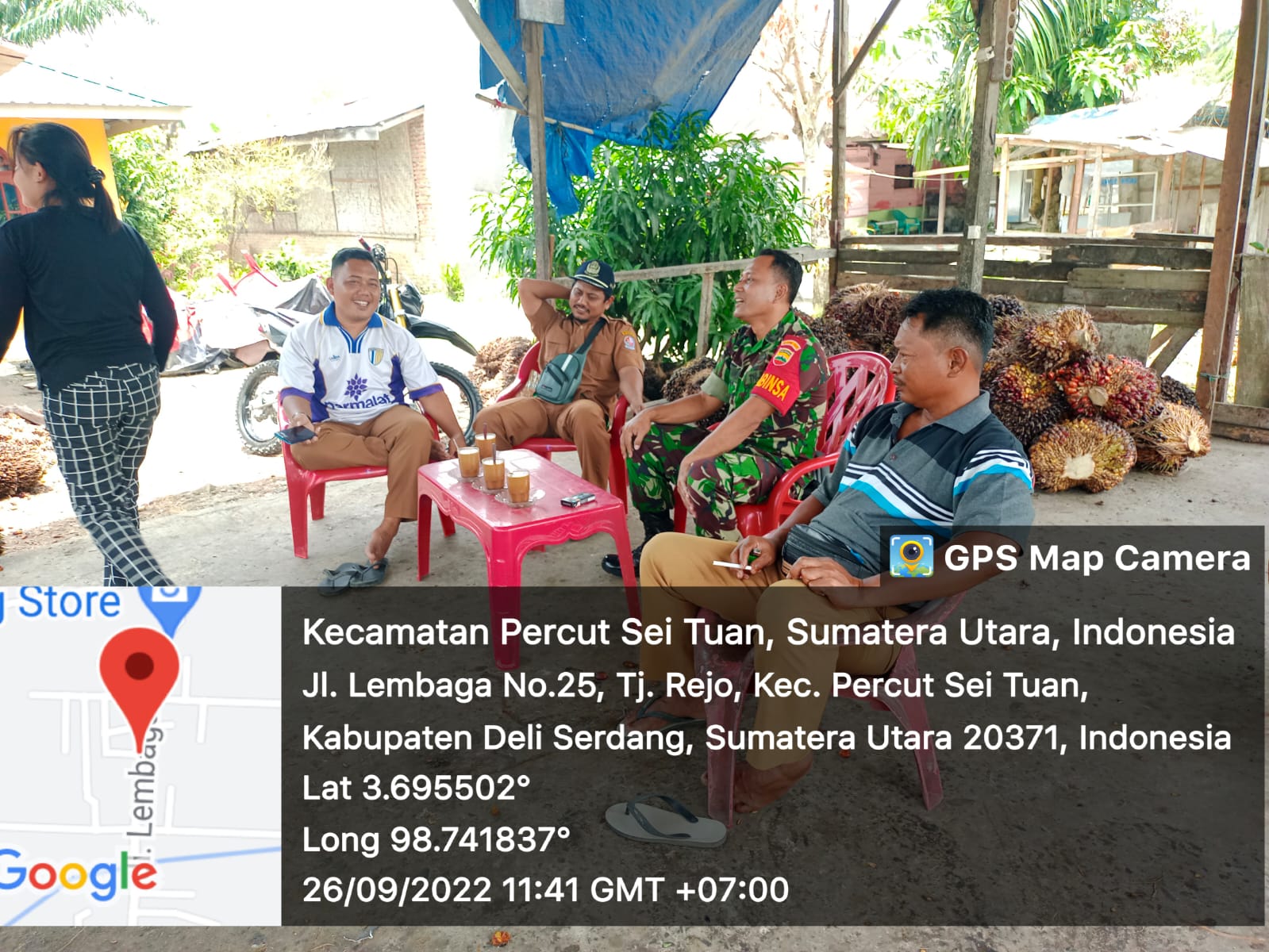 Seperti yang dilakukan Peltu Adi Syahputra Babinsa Koramil 0201-13/PST wilayah binaan Desa Tanjung Rejo pada hari Senin 26 September 2022 melaksanakan Komunikasi Sosial bersama Kadus dan warga di sebuah warung di Jln Lembaga Dusun I Desa Tanjung Rejo Kecamatan Percut Sei Tuan