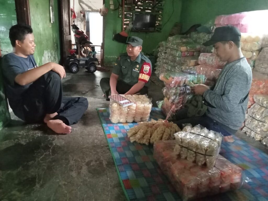 Percut Sei Tuan. Babinsa Koramil 0201-13/PST Kodim 0201/Medan Serda Sudirman melaksanakan Kegiatan Komsos dengan Pengusaha makanan ringan dalam rangka pembinaan pemberdayaan UMKM dan meningkatkan perekonomian di Dusun III Desa pematang lalang Kecamatan Percut Sei Tuan, Kabupaten Deli Serdang, Kamis (25/05/2023)