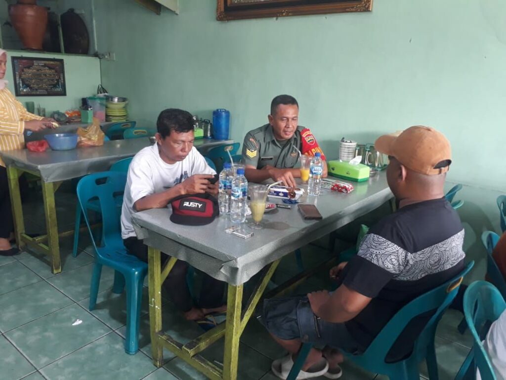 Kali ini Babinsa Serka Susanto memanfaatkan warung makan untuk melaksanakan Komsos dengan warga binaannya, pasalnya warung tersebut merupakan tempat berkumpul warga ketika melepas lelah setelah bekerja.
